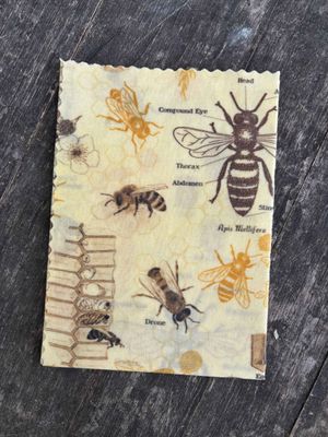 The 'Beekeeping' Limited Edition beeswax wrap is great to wrap a block of cheese, cover a cold platter, or wrap your favourite sandwich wrap. Our large reusable beeswax wrap is 34cm - 38cm in size. Reusable beeswax wraps are an alternative to single use plastic.